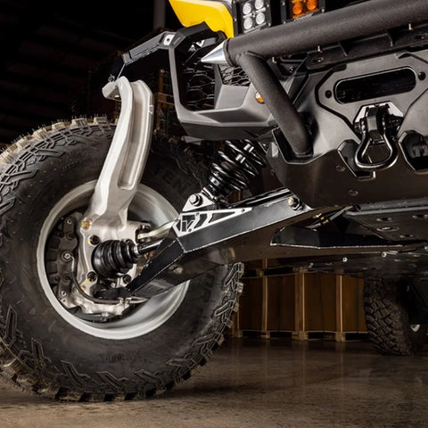 It’s no easy feat to make tougher arms that keep the Maverick R’s signature suspension performance, but Assault Industries rose to the task. These A-arms are hand welded with 1/8" advanced steel plating and internal gusseting. Pivot blocks and sway bar connections are built into the frame. Altogether, you get boosted strength and clearance that will more than handle the demands of the Mav R’s cutting-edge suspension, and if you manage to break them, you’re covered with a lifetime warranty.
