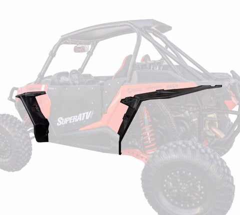 The SuperATV Fender Flares for Polaris RZR XP Turbo models to keep dirt on the ground. At 8.5” wide at their widest point and over 4” wider than stock, these fender flares do a better job of deflecting dirt and mud than your stock fender flares. They match the look of your machine and fit so well, your friends will swear they’re OEM fender flares!
