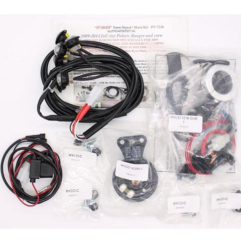 Regular price $331.50Ryco Motorsports Polaris Ranger 800 Full Size Models Street Legal Kits with Turn Signals, Horn and lighted license plate bracket for single or crew bench models. All components and workmanship are highest quality and have easy installation.