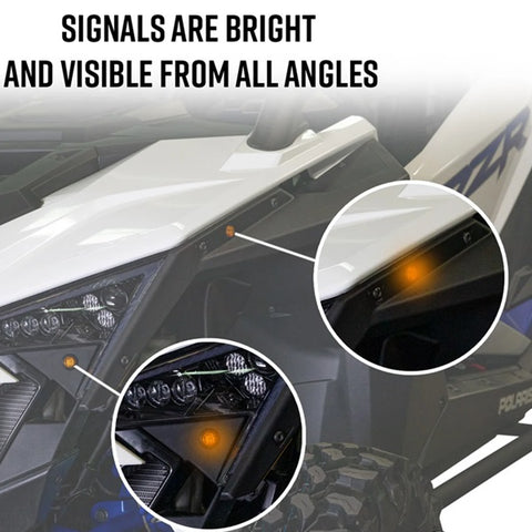The SuperATV Deluxe Plug & Play Street Legal Turn Signal & Horn Kit for 2020-24 Polaris RZR PRO XP Models comes with everything you need to start making your RZR PRO XP & XP 4 street legal and it’s oh-so-easy to install. The wiring harness is complete and pre-assembled, and it’s color-coded so any novice can put it together.