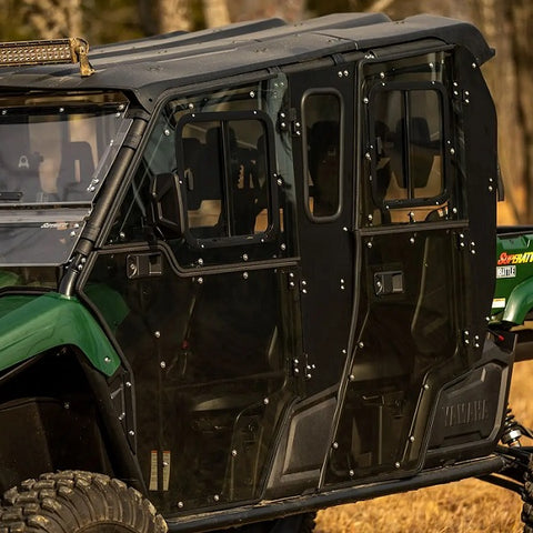 The SuperATV Convertible Cab Enclosure Doors for Yamaha Viking VI Models features a scratch-resistant sliding window, an easily removable top half, the ability to remove and reinstall the full door in seconds, you get just the right amount of airflow whether you’re riding in snow or sunshine plus it's made with Scratch-Resistant Polycarbonate Done Right!
