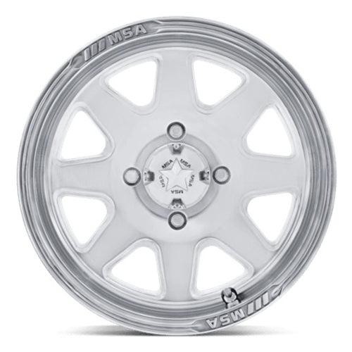 The MSA MA054 Spark Polished ATV UTV Wheels in 14x7 and 15x7 Inch Sizes for 4/110, 4/137, 5/4.5, 6/5.5 and 4/156 Bolt Patterns to fit most ATV UTV SxS Models. Spark is built for riders who want bold style without the extra fuss. Its slim 8-spoke design and wide-open windows cut weight and make blasting out mud quick and easy.