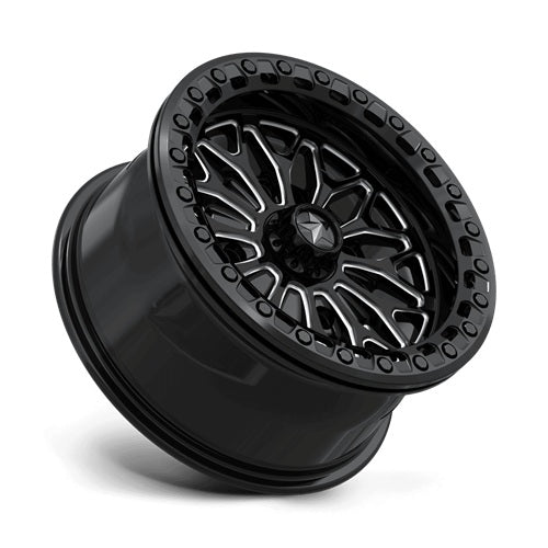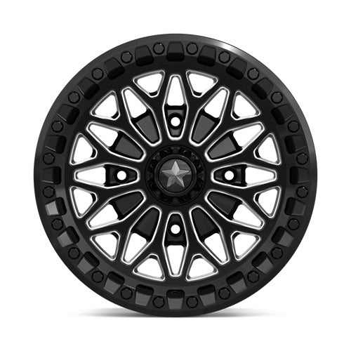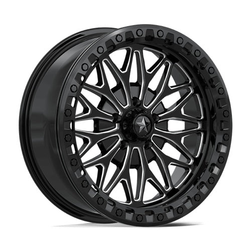The MSA Bolo MA053 Gloss Black & Milled Beadlock is built to keep your UTV planted when the terrain gets rough. This true beadlock wheel uses a curved mesh design with aggressive detailing and a secure ring system that locks tires in place under heavy load. Integrated dirt-release channels help shed debris, while bold accent rings add a custom touch.