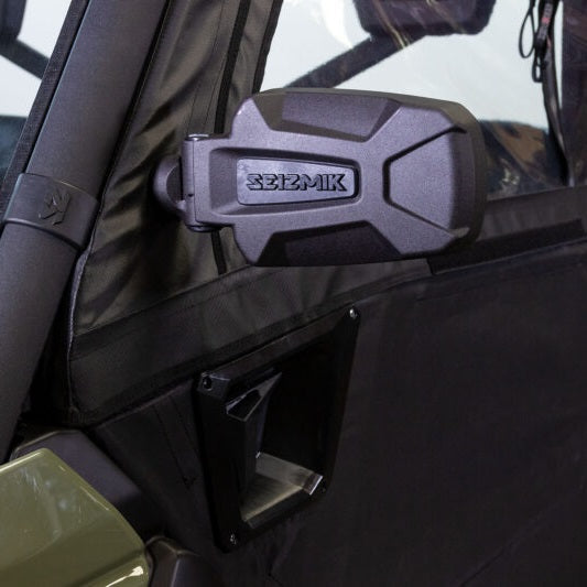 The Seizmik Framed Door Kit for the Can-Am Defender HD Models mounts quickly and easily to the vehicle without cutting or drilling into any part of the vehicle. The sturdy steel frames are designed & engineered in CAD using precision 3D scanned geometry for a tighter fit into the vehicle's door jamb.