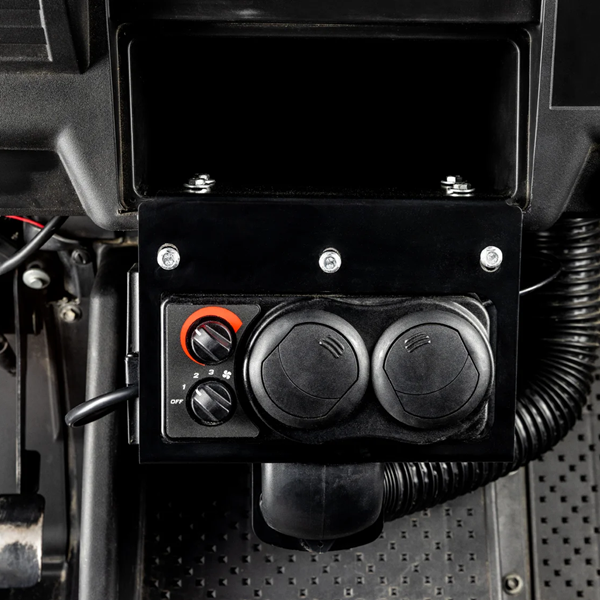 This electric cab heater pulls heat directly from your engine. That means the longer you ride, the more comfortable you’ll be. It’s mounted below the dash to stay hidden and out of the way. You’d probably forget it’s even there—if it weren’t for the fact that you can no longer see your breath, of course.