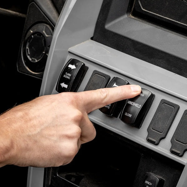 The SuperATV MaxDrive Power Flip Up Windshield for the Yamaha Wolverine X2 1000 is the Adaptable Windshield you need. If you’re tired of canceling rides because of the weather, you need a MaxDrive Power Flip Windshield. It uses electronic actuators to open and close with the push of a button. It’s the easiest way to adapt to changing weather so your rides never get ruined.