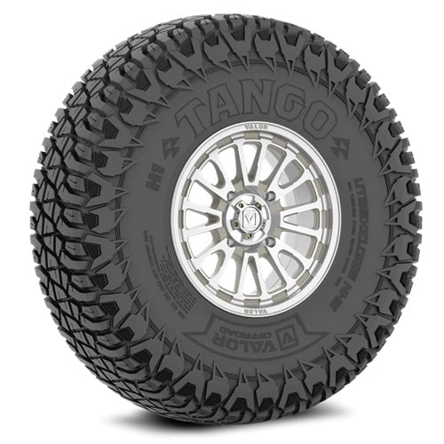 The Valor Tango Tire & Wheel kits come in 32x9.50-15 size and are mounted on V09, V13 or V14 VALOR OFFROAD Wheels in a 4/156 Bolt Pattern. Tango Tire utilizes our exclusive H1 (65A) durometer rated compound. H1 (65A) - All-terrain, hard pack, fast, street/city use, with extra-long tread life. Users can expect upwards of 4,000 miles with the H1 compound. All Tango UTV tire was over-engineered to measure true to size.