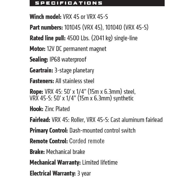 The WARN VRX 25 4500 lb. Powersports Winch with Wire Rope and Corded Remote offers reliable performance from a name you can trust. They offer something for UTV Models. VRX has the features you want, the power you need, and a Limited Lifetime Mechanical Warranty from WARN.